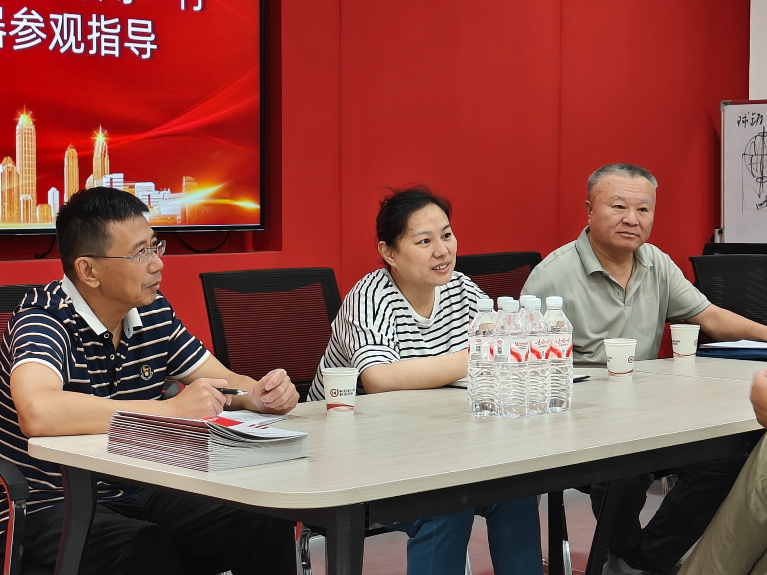 會員管理部王麗(中)、網絡運營部部長張齊全(右)一行蒞臨科電儀器走訪交流。